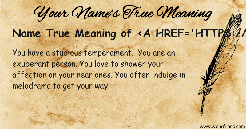 Get to know yourself better with Name True Meaning and share it with everyone on Facebook, Twitter, Pinterest, Tumblr, Whatsapp etc.
