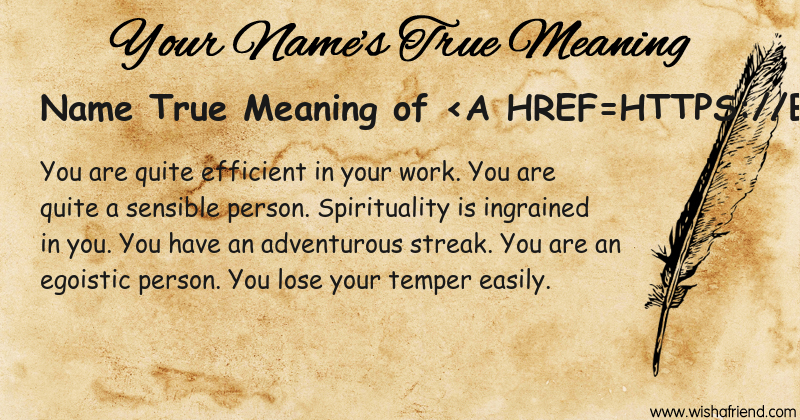 Get to know yourself better with Name True Meaning and share it with everyone on Facebook, Twitter, Pinterest, Tumblr, Whatsapp etc.
