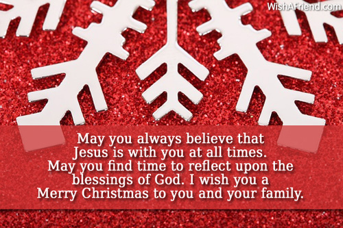 May you always believe that Jesus is with you at all times. May you find time to reflect upon the blessings of God. I wish you a Merry Christmas to you and your family.