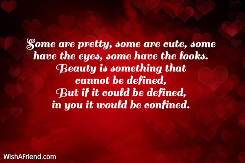 Some are pretty, some are cute, some have the eyes, some have the looks. Beauty is something that cannot be defined, But if it could be defined, in you it would be confined.